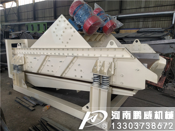 采用了雙電機(jī)自同步技術(shù),通用型偏心塊、可調(diào)振幅振動(dòng)器。主要由篩箱、激振器、支承系統(tǒng)及電機(jī)組成。兩個(gè)互不聯(lián)系的振動(dòng)器作同步反向運(yùn)轉(zhuǎn),兩組偏心質(zhì)量產(chǎn)生的離心力沿振動(dòng)方向的分力疊加,反向離心抵消,從而形成單一的沿振動(dòng)方向的激振動(dòng),使篩箱做作往復(fù)直線運(yùn)動(dòng)。從洗砂機(jī)或者壓濾機(jī)(等過濾,濃縮設(shè)備)出來的含水量較高物料直接排放 到脫水篩后端。脫水篩不斷振動(dòng),物料中的水分和極細(xì)粉塵會(huì)從底部的聚氨酯篩板濾出。推動(dòng)已 脫水的物料到前端篩口排出??筛鶕?jù)實(shí)際需要調(diào)整振幅大小、角度以及采用單層或者雙層篩板。